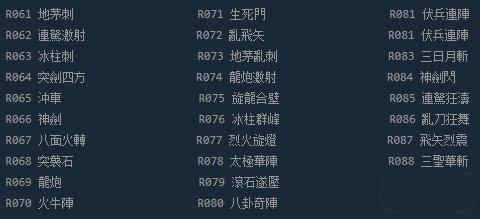输入R### = 我方使用第###号武将技(### = 编号001~110)