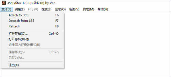 如果要修改内存,在进入游戏之后,执行File菜单的Attach to 355(修改器什么时候打开没有关系),此时各项功能就可以正常使用