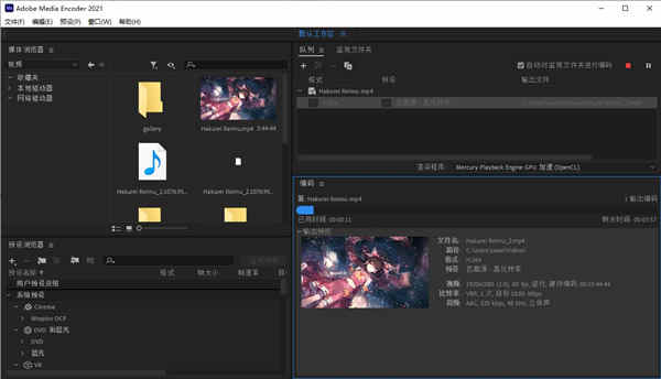 Adobe Media Encoder 2021是由Adobe公司推出的的一款最新的音频、视频编码软件,它能够针对不同应用程序和观众,以各种分发格式对音频和视频文件进行编码,同时还可以根据不同的电子设备,来导出适合设备格式的视频。其中不仅内置了大量的预设编码格式,还支持各种格式的媒体格式,因此可随意的导入文件进行编码,并使用它还可以帮助你进行完整的收录、转码、创建代理和输出等全部流程。另外还提供专门设计的预设设置,可以非常方便的导出与特定交付媒体兼容的文件。
