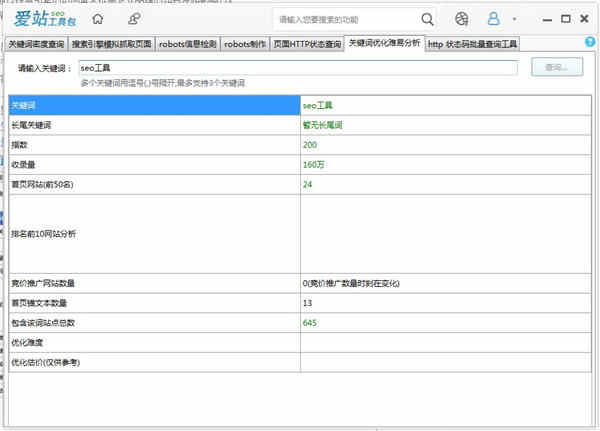 如果有一天你的客户给你一些项目的关键词,问你这些关键词需要多长时间才能做到搜索引擎的首页? 这个时候你就需要对这些关键词的优化难易度做一个整体的分析,借助到SEO关键词优化难易分析工具会让你的工作事半功倍。