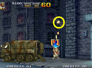 -除了下方轨道的炮弹要跳起来闪,其它蹲下就好(要跳的时候要记的把游戏杆放开,不然有时候会按到滑垒)