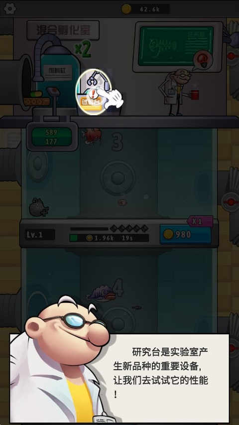水族研究所安卓版是一款休闲的放置挂机养鱼游戏,开局由漫画故事背景引导,可以给玩家营造出更强的代入感,在这里由于海洋环境污染,导致鱼类物种多样性发生了变化,现在你将陪同余博士在生物基因研究所的帮助下,建造水族饲养仓,通过饵料的研发和生物基因工程来建造鱼类物种的多样性,同时依靠生物科技,大幅提高挂机收益的产出效益!