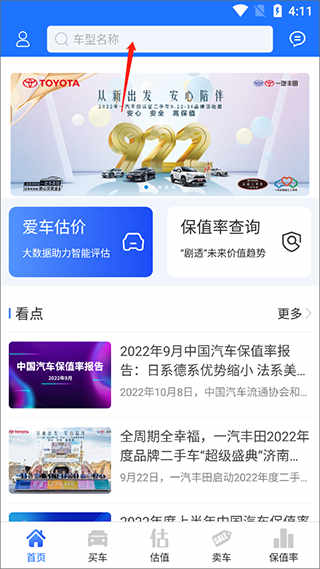 1、进入精真估云评估app,点击最上面的搜索栏。