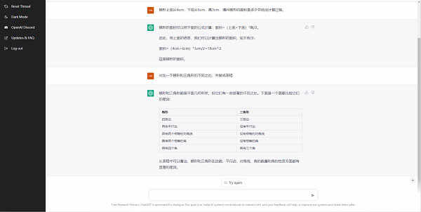 比如我们问一下 ChatGPT 梯形相关的问题,看看他会怎么回答。