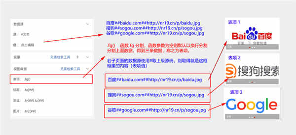 如上图所示,不管你数据源操作的是什么类型,最总目的都是去获取一个文本最后交由页面渲染器进行解析并将界面渲染出来。对了,数据源中的 #爬虫 实际上和爬虫并无多大的关系但也有一定的关系。 爬虫的配置图解: