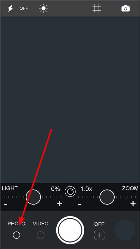 1、打开35倍高清望远镜软件,进入主页面,可以看到有LIGHT(光线)、ZOOM(变焦)、PHOTO(照片)、VIDEO(录像)等功能键;