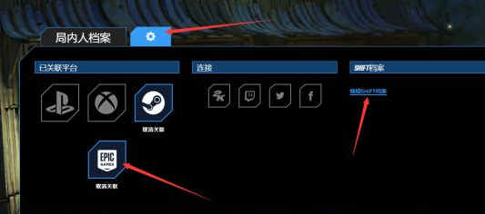 2、点击齿轮,绑定你的EPIC账号,再点击,编辑SHiFT档案。