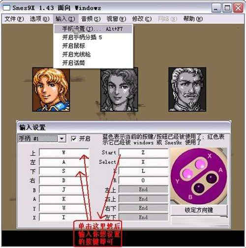 6、 当然如果你习惯用手柄或者用其他按键来控制、你可以修改、点输入――手柄设置、然后在想修改的按键对应的框里面输入你想设置的按键、最后点确定就可以了。如图: