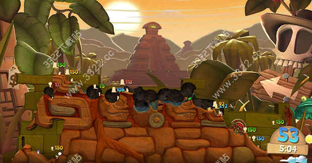 3.爆破性武器的伤害有一定范围,原则上离爆炸点越近伤害越高。然而也有例外的,例如多段伤害的香蕉炸弹,是以最后吃到的爆炸数目决定伤害值。