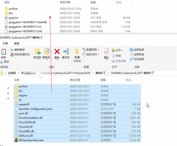 3、然后将解锁补丁内的文件全部复制到游戏根目录下;