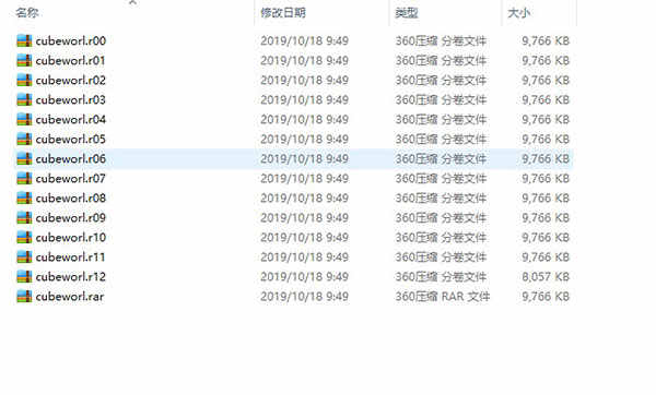 1、在本站下载文件后先打开魔方世界Beta版文件夹,可以看到若干个压缩包,随便选择一个解压。