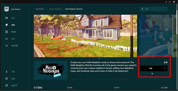 4、点击获取,把它添加至Epic平台的游戏库中;