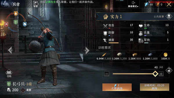 在了解了不同兵种的特点后,领主即可进行兵力筹备。首先,等级1普通兵种只是作为前期过渡兵种,兵力囤积达到最大出征规模的2倍为最佳数量。比如当前军团出征最大规模为20000,军力囤积达到40000即可。