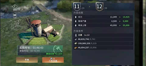 2、建筑建造速度的提升也同样可以叠加,当领主同时拥有金色品质的梅丽珊卓和安妮后,可以缩减60%的建造速度,以11级的农田为例,原始时常为02:50:44,缩减后为01:46:43,效果非常显著。