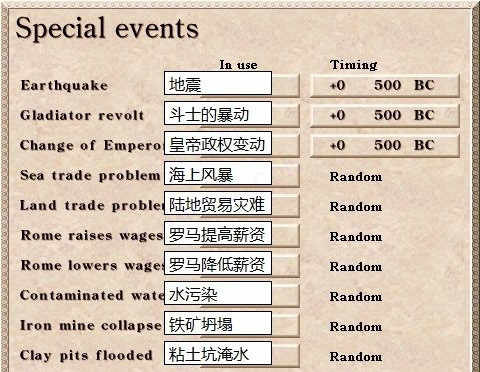 上一对话框翻译为无入侵事件、当地的暴动、敌军攻击、帝国战役