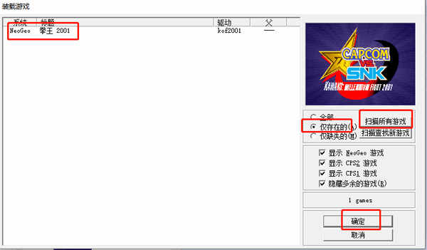 3、最后点击“文件”载入游戏,接着按照以下①②③④步骤依次进行即可运行“拳皇2001”游戏。