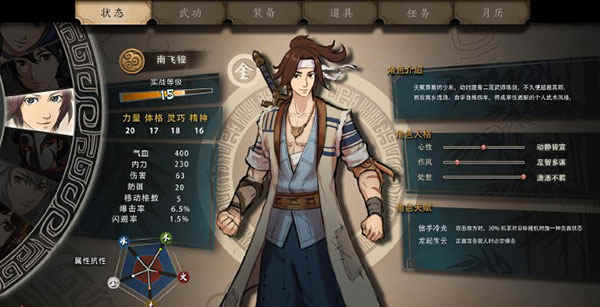 锻炼修业、比试考校、陶冶四艺、培养人格、交朋结友、下山行侠,透过丰富的养成指令和事件形塑专属于你的角色,多采多姿的阁中生活,你会如何度过?