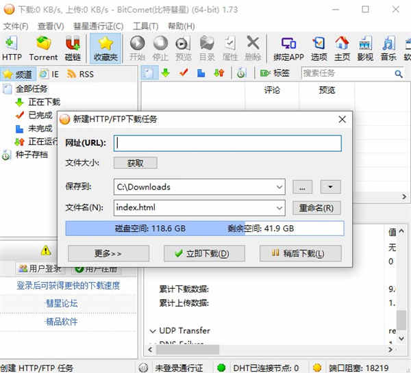 3、除了暗中上传和离线下载,迅雷支持的协议,比特彗星BitComet都支持。