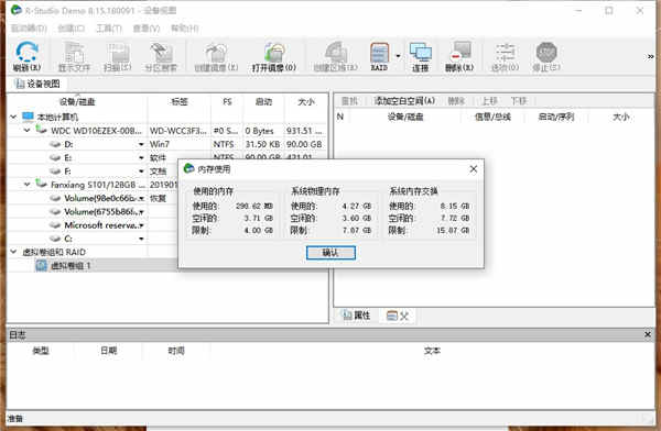 3、在标准的磁盘安装方式以外,R-Studio也能支持RAID磁盘阵列系统。