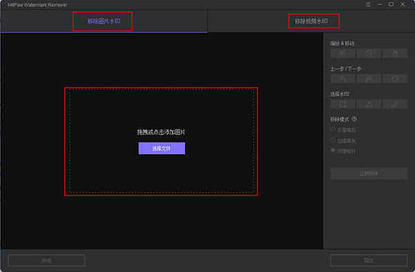 2、选择删除图像/视频水印,拖放文件或单击选择文件添加需要去水印的文件。