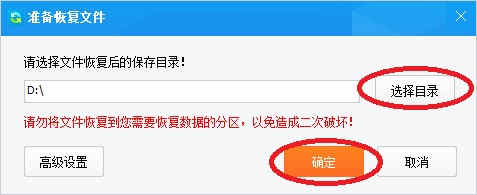 注意:请不要将文件恢复到有数据需要恢复的分区里,以免造成二次破坏。