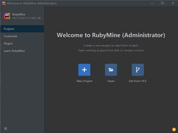 新的欢迎屏幕RubyMine 2021 提供了重新设计的欢迎屏幕。 现在,您可以在 Projects 选项卡中访问和排列项目,在 Customize 选项卡中设置 IDE 界面,在 Plugins 选项卡中管理插件,以及在 Learn RubyMine 选项卡中访问学习资源。
