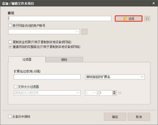 3、弹出添加/编辑文件夹项目的窗口,点击选择按钮选择文件所在的路径