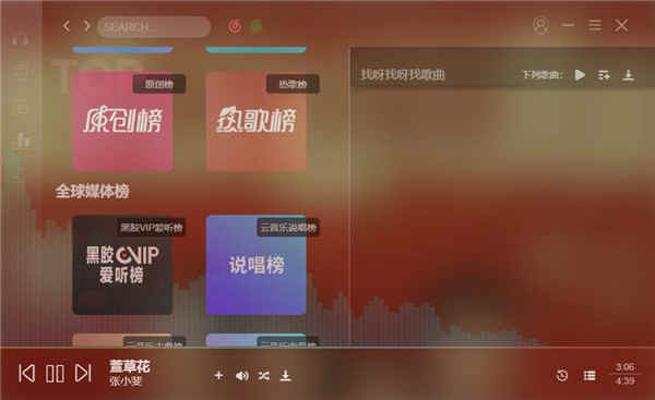 还能查看云音乐特色榜单,免费听各种VIP音乐,查看全球媒体榜单,一键检索各种热门歌曲