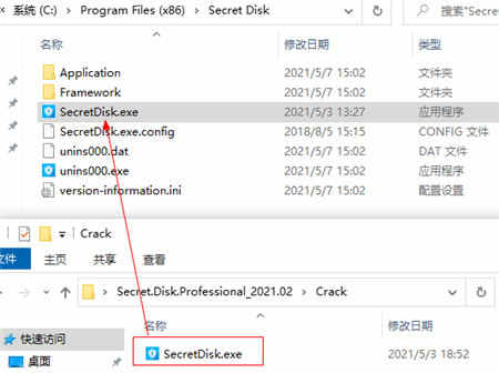 5、接着,将Crack夹中破解文件“SecretDisk.exe”复制到软件安装目录中即可