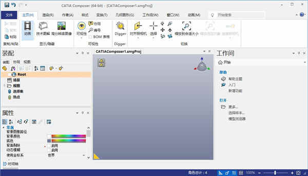 1、首先打开软件,发现DS CATIA Composer R2022还是英文的界面;