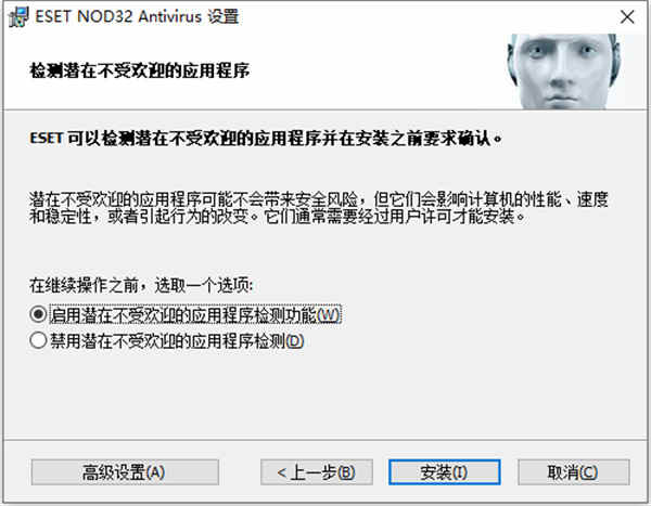 4、选择第一项:启用潜在不受欢迎的应用程序检测功能