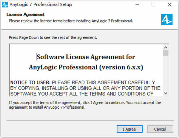 2、双击anylogic-professional-8.5.0.x86_64.exe运行安装程序,点击I agree