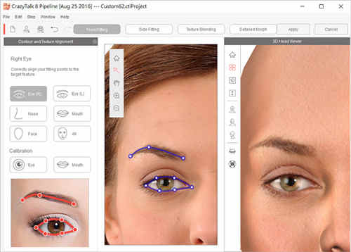 CrazyTalk提供精确的拟合解决方案,以匹配您的图像中的面部特征,这是任何面部动画过程的关键起点。在FrontFitting步骤中,您需要在每个步骤中尽可能准确地拟合以下面部特征。