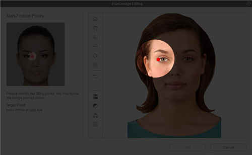 注意面板左上方的指令图像。 它显示了设置当前特征点的正确位置。