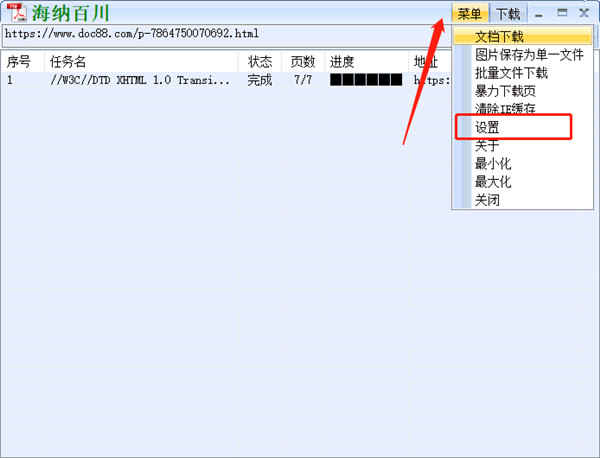 7、文档下载完成后,点击“菜单”-“设置”,查看输出路径,就可看到已下载完成的文档