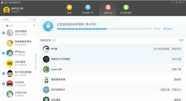 4、快速加群好友自动批量向多个微信群内的非好友成员发送好友验证申请,省时省心。
