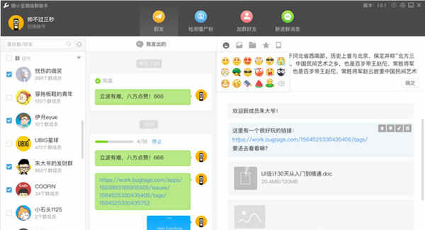 3、消息群发支持多条同时发送给多个对象,内容为文字、链接和图片的任意组合。