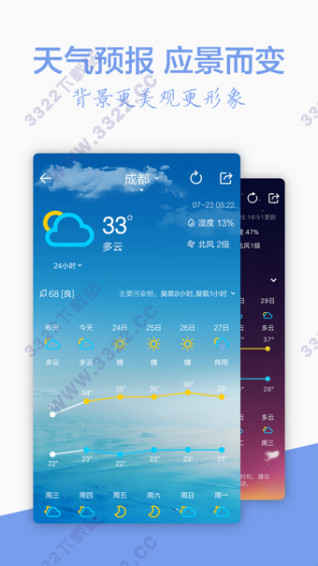 8、云天气:覆盖全国所有县级以上城市,连续6日天气温度趋势图,日历视图可显示天气信息