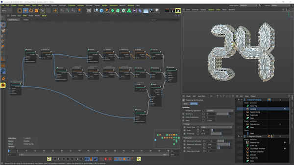 3、胶囊在Cinema 4D的场景节点核心中构建的胶囊资产提供了类似程序插件的功能。现在,这些胶囊可以直接在Cinema 4D的经典对象管理器中作为基本体、生成器或几何体修改器使用。或者使用一个胶囊构造器,用您自己的基于节点的创作来增强您的经典C4D场景。