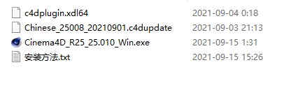 1、下载软件压缩包文件,得到C4D R25安装程序、汉化包和破解补丁文件;