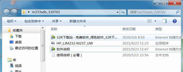 1、从本站下载惠普HP MFP M233sdn打印机驱动压缩包后,将其解压后即可看到32/64位的驱动适配版本;