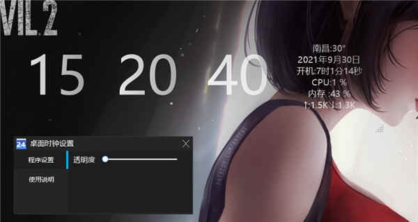 7、或者是设置桌面时钟的透明度,都由你自行决定。