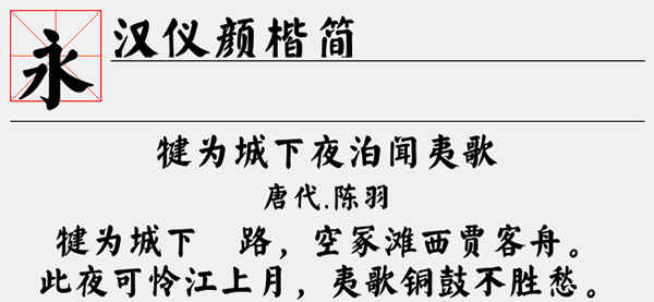 汉仪颜楷简电脑字体是一款颜值很高,风格典雅字体,字体具有线条粗壮有力、字形飘逸大方等特色,整体美观。以楷书的优美搭配浓浓的笔画,以楷书的优美搭配浓浓的笔画,整体效果非常好看醒目。适合应用于艺术设计、平面宣传设计、网页设计、文本装潢、信息展示、篆刻制模英文、数据制作、装潢设计、视觉设计、字帖等一切合法应用场景,有喜欢的朋友可免费下载收藏。