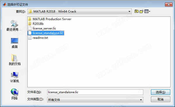 10、启动程序,然后选择手动激活,继续将MATLAB R2018b Win64 Crack文件夹内的license_standalone.lic文件复制到安装目录license目录里面,默认在"C:\Program Files\MATLAB\R2018b\licenses";