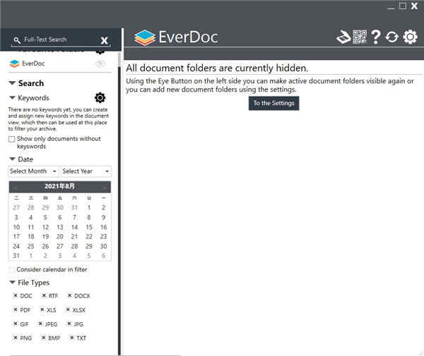 10、可以更改应用程序范围内的EverDoc设置和支持的文本处理程序的状态。