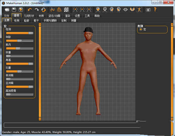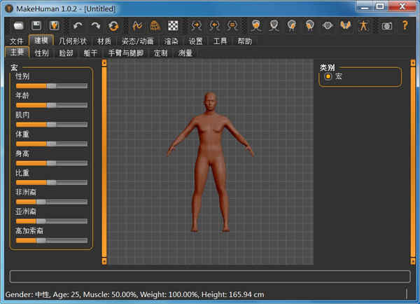 4、进入软件后主界面如下,以上就是 makehuman安装教程。
