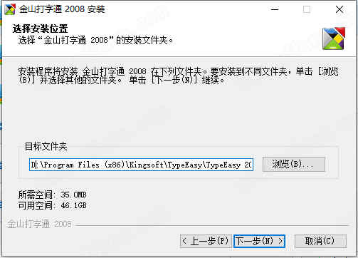 5、自行选择金山打字通软件的安装位置,尽量不安装在系统盘;