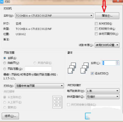 2、第二步,进行打印机属性设置。点击打印窗口左侧的【属性】。