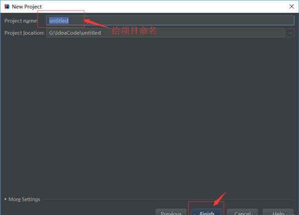 4、给项目命名,默认是 untiled,自己填个名字吧,最后点击 finish