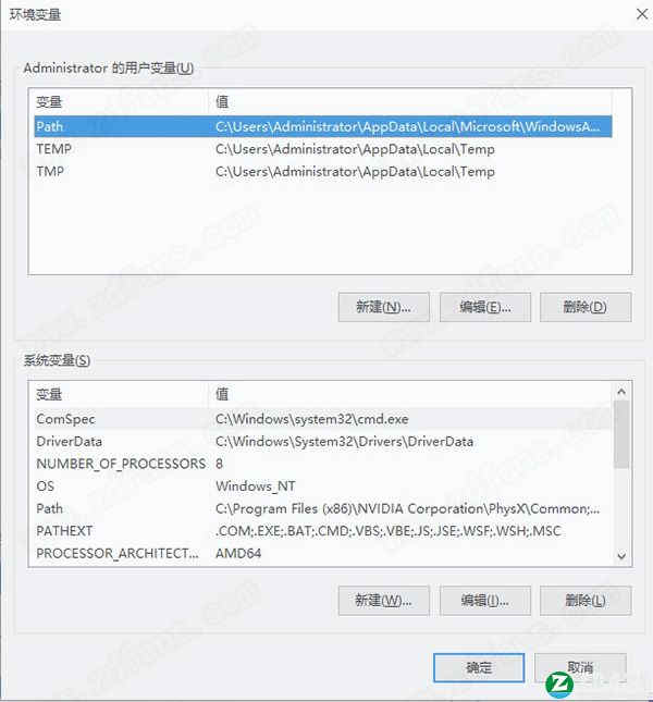 (3)点击窗口左侧的“更改我的环境变量”链接,控制面板将弹出窗口如下